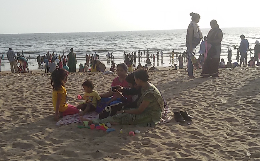 For those not familiar with Mumbai’s Juhu beach, it is a weekend favourite for families, blushing couples, energetic adolescents and hawkers… one of the few places free to come out and play. There is a long stretch of sand with plenty of room to jog, play soccer, enjoy a picnic with a multitude of vendors catering to the crowds that grow until sunset the gradually slip away.